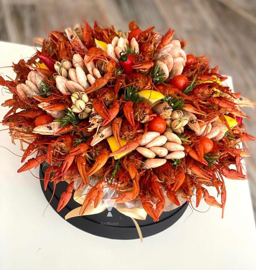 Шедевр! Раки были свежими и вкусными, а фисташки добавили нежности и аромата. Креветки и черри придали композиции дополнительную аппетитность и сладость. Зелень придала композиции свежий аромат. Вес композиции был идеальным, чтобы порадовать всех гостей. Очень рекомендую эту вкусную и красивую композицию!