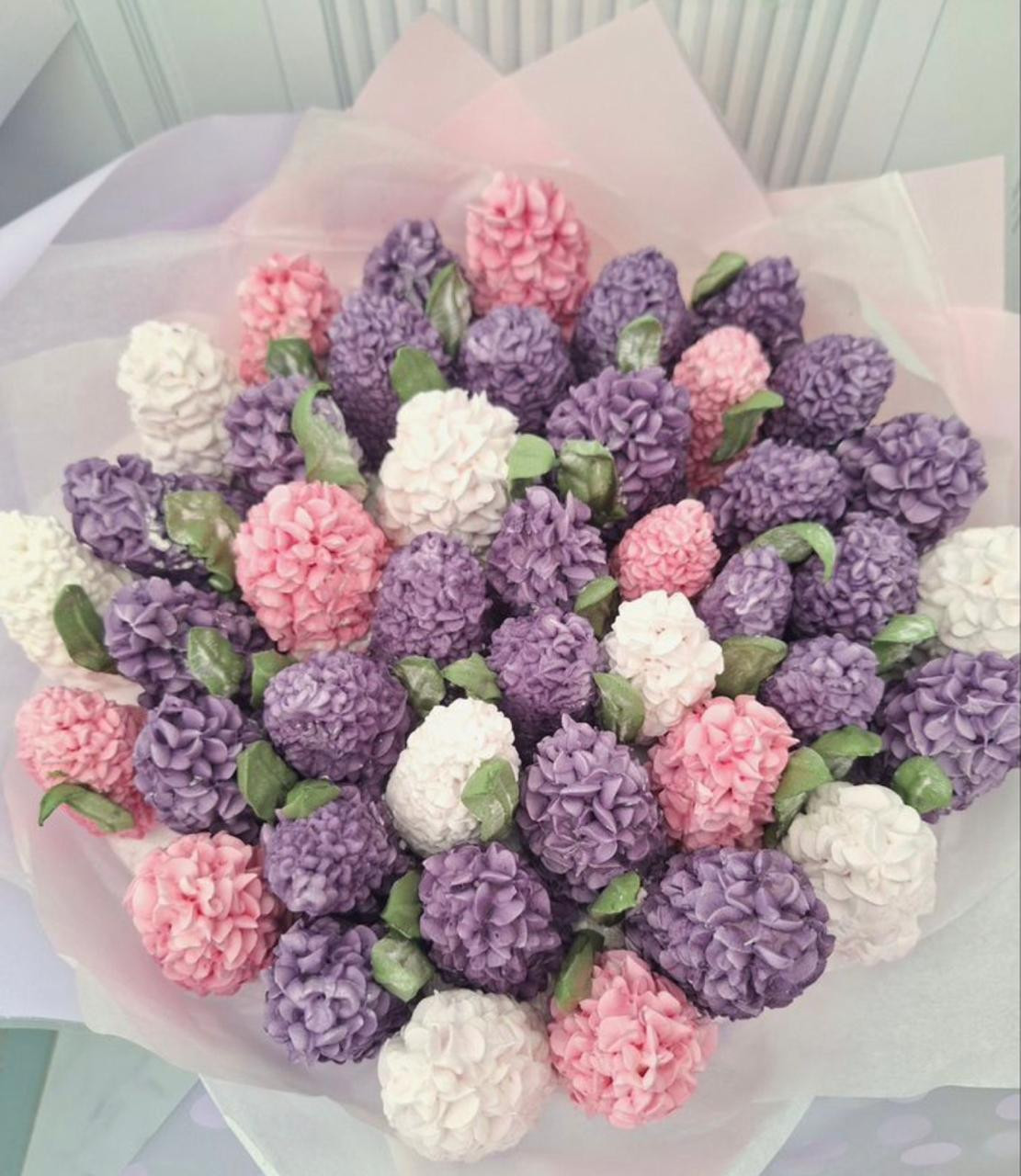 Упаковка: зефирный букет упаковывается в специальную защитную пленку и отправляется к получателю в коробке переноске.