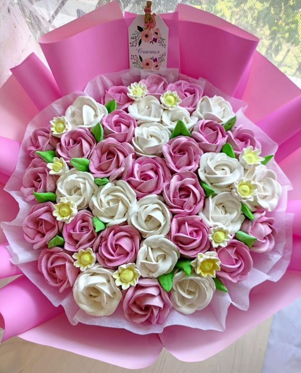 Букеты цветов из зефира, это ручная работа, а не фабричное производство. Поэтому 100% повторение образца невозможно. Но Вы можете быть уверены, что Ваш букет всегда будет эффектным, красивым, наивкуснейшим и гармоничным.
